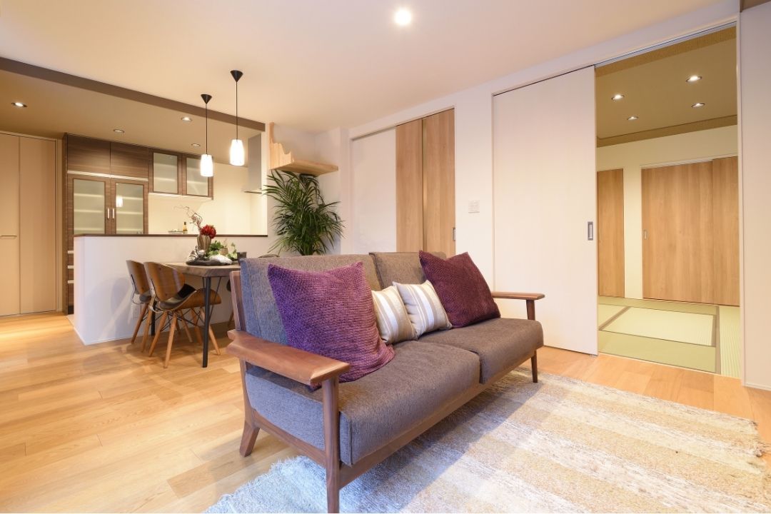 空間の奥行きを感じる、ゆったりとした広々リビング。