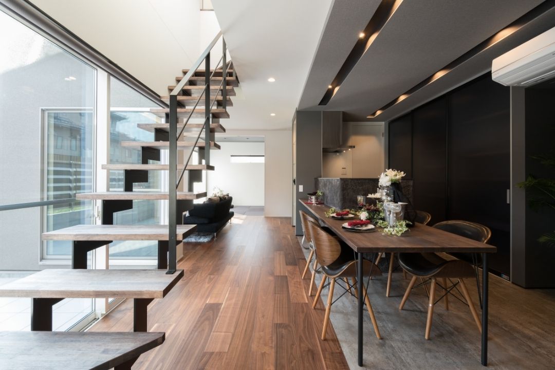 階段をリビングに設計することで、家族と常に顔を合わせて暮らすことができ、コミュニケーションが生まれる。